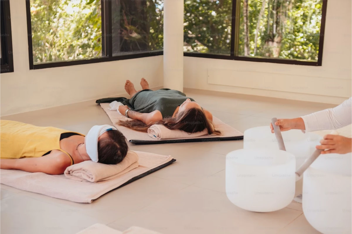 Activities include yoga, meditation, fitness exercises, nutrition coaching, and mindfulness practices.